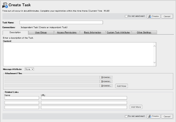 | [Do not send mail] checkbox | When not sending any mail notifying of a Task creation regardless of the server settings, mark this checkbox. |