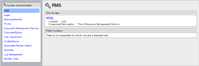 - In the list on the left of the [System Administration] window, click the component name of the administrative application which you wish to start.